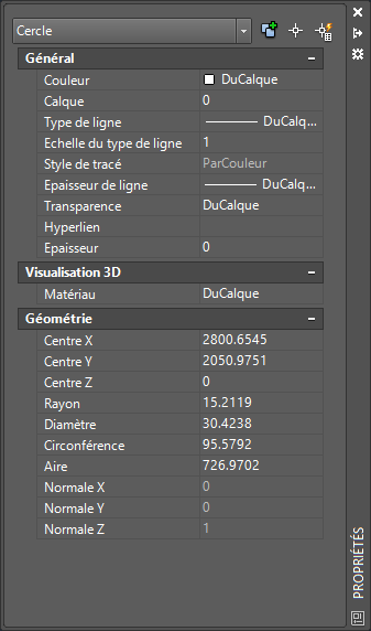 Le panneau Propriétés répertorie les paramètres courants des propriétés applicables aux objets sélectionnés ou bien à un ensemble d'objets. Toute propriété paramétrable peut être modifiée en spécifiant une nouvelle valeur.