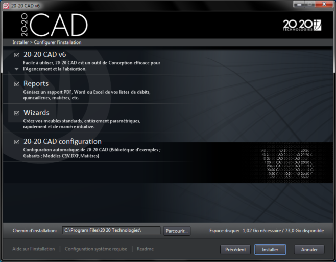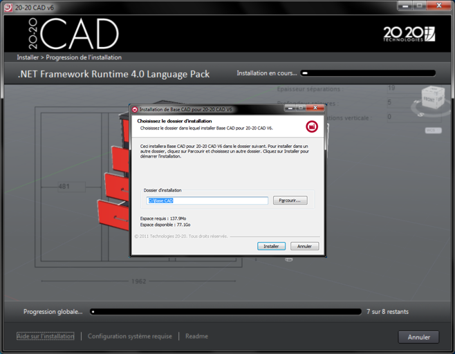 Indiquez le chemin d’installation de votre Base CAD, puis cliquez sur le bouton INSTALLER.