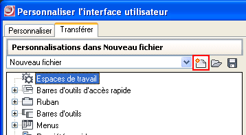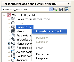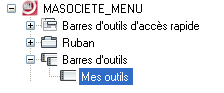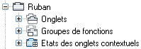 C’est dans cet arbre que vous pouvez organiser vos commandes, menus, barres d'outils, les panneaux, les onglets du ruban, et d'autres éléments de personnalisation.