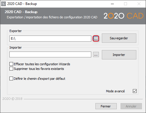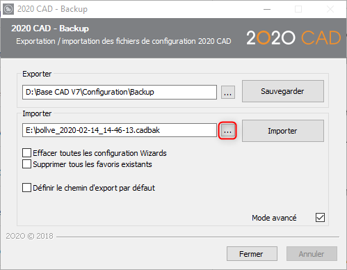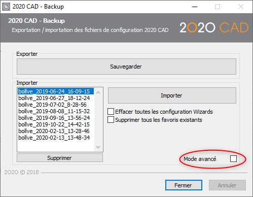 Vous pouvez récuperer vos données facilemnent et les importer sur un autre ordinateur en utilisant l'outil de sauvegarde inclu dans 2020 CAD.