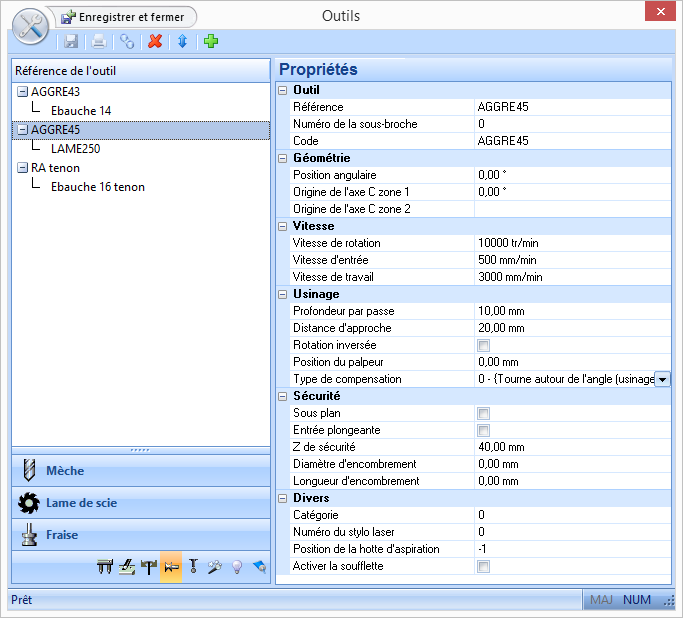 Configuration » Outil » Fraise
